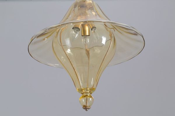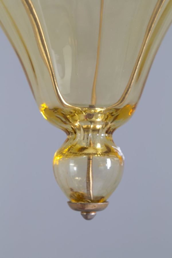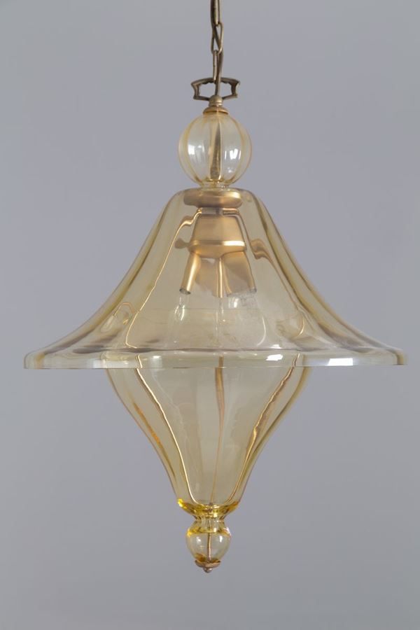 Lampadario a forma di lanterna in vetro soffiato. Venezia. XX secolo