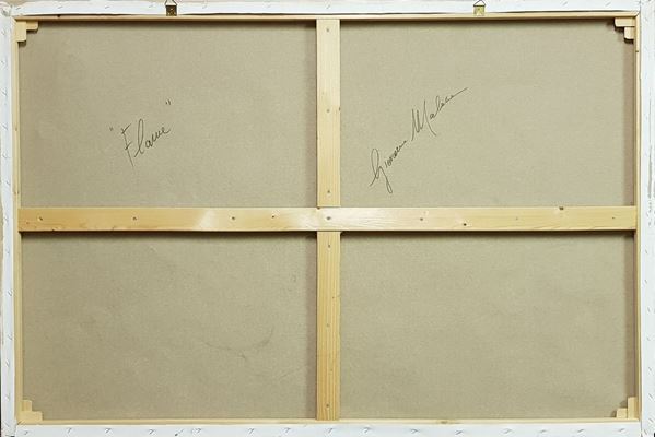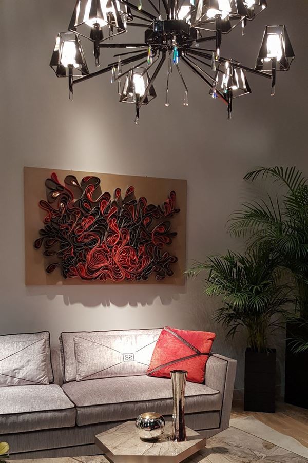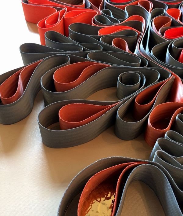 Dipinto scultura con resine, nastri, pietre e foglia oro intitolato ''FLAME''. Firmato e intitolato sul retro.