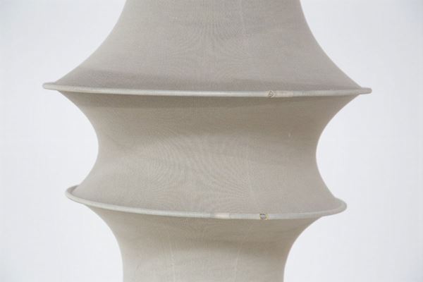 Lampada Falkland in alluminio, materiale elastico tubolare e anelli metallici. Produzione DANESE MILANO. 1964. Difetti alla rete.