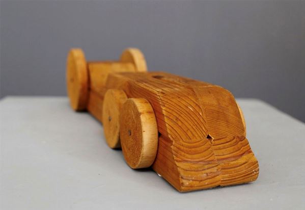 Scultura in legno intitolata ''LOCOMOTIVA''. Con certificato di autenticità sul fondo. 1956.