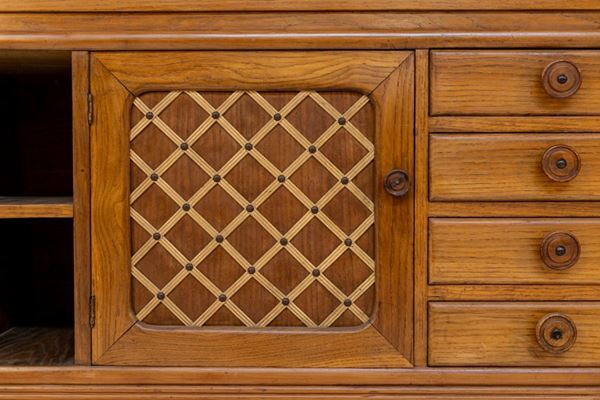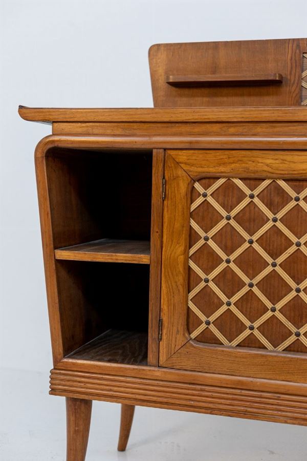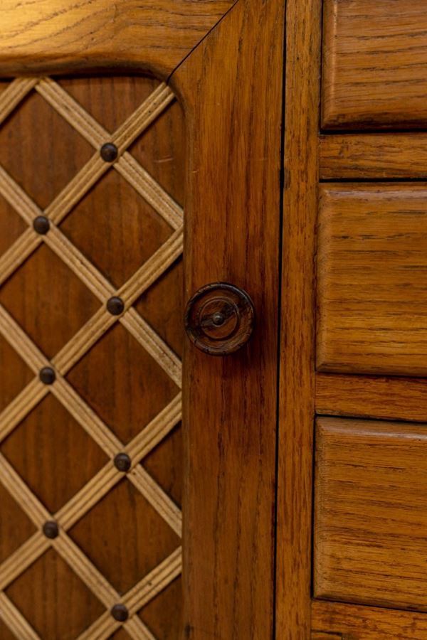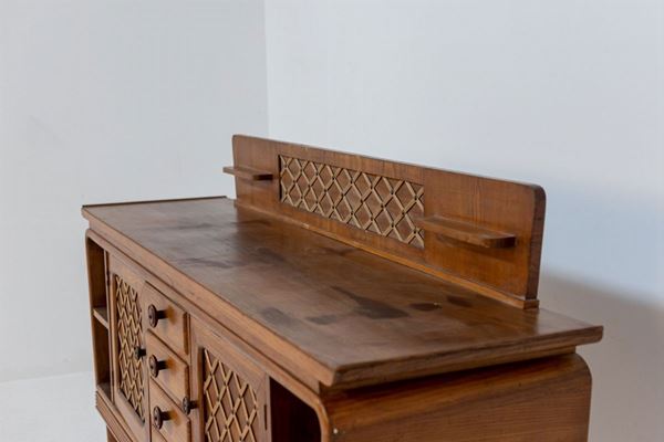 Credenza in legno con diversi scomparti e cassetti. Anni '50. Lievi segni di usura.