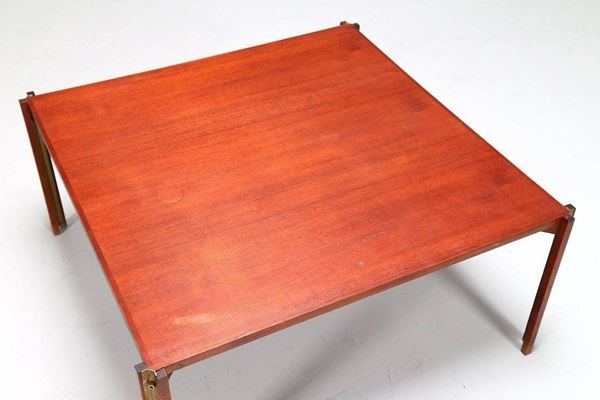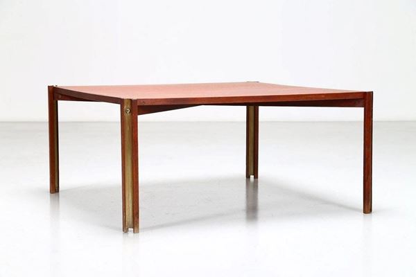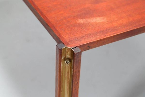 Tavolino da caffè Castore in noce, teak e ottone. Produzione STILNOVO.1959. Pubblicato in Archivio del Design di Ico Parisi, ref. 1959.SD10.