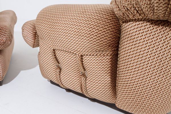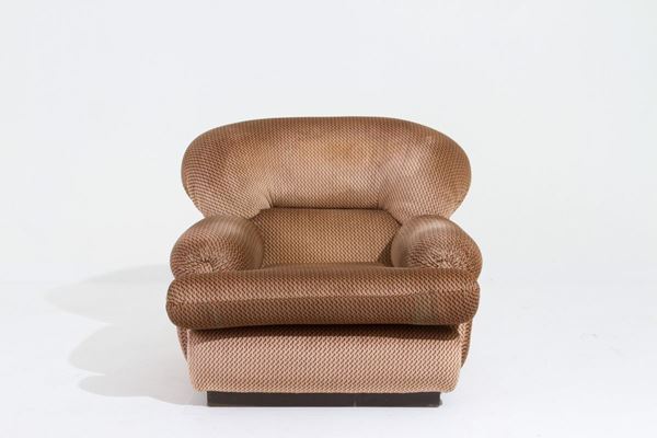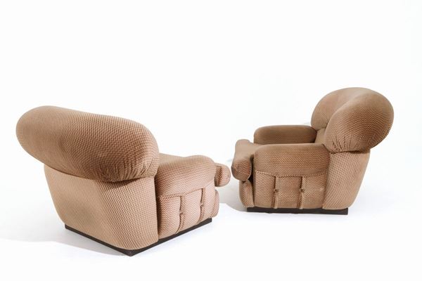 Due poltrone Woops in velluto con dettagli in metallo cromato. Anni '70.