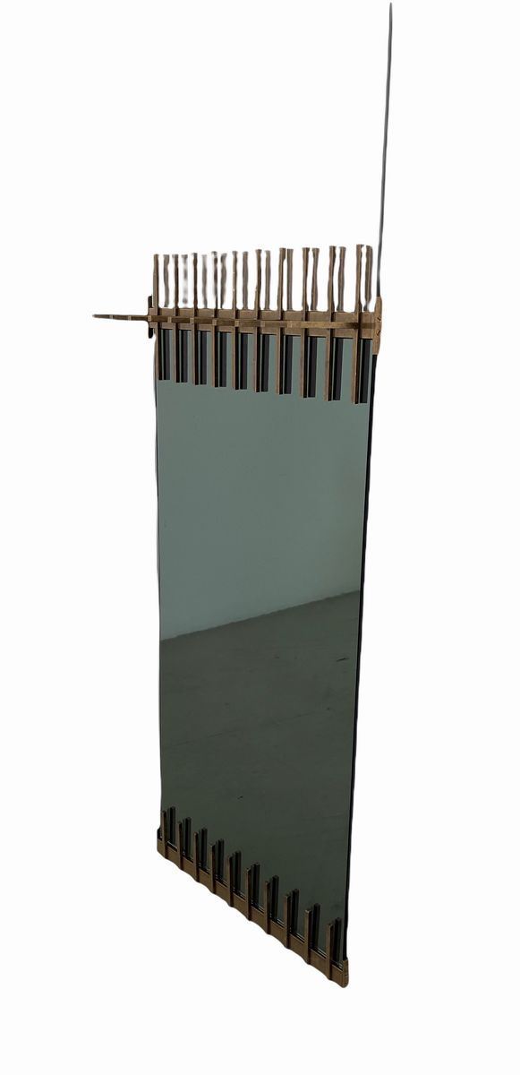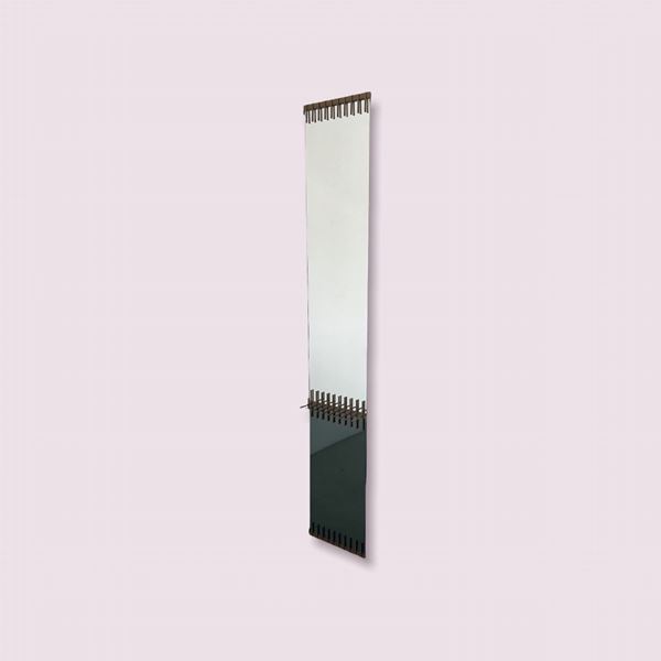 Raro specchio con cornice e struttura in ottone dorato, cristallo trasparente e colorato. Produzione SANT'AMBROGIO E DE BERTI. 1959.