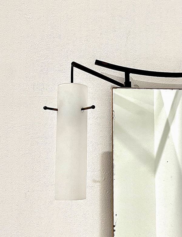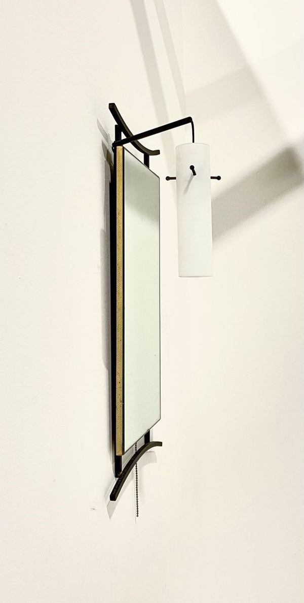 Specchio con struttura in metallo e lampada incorporata. Manifattura italiana. Anni '60. Difetti.