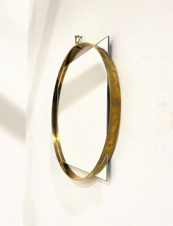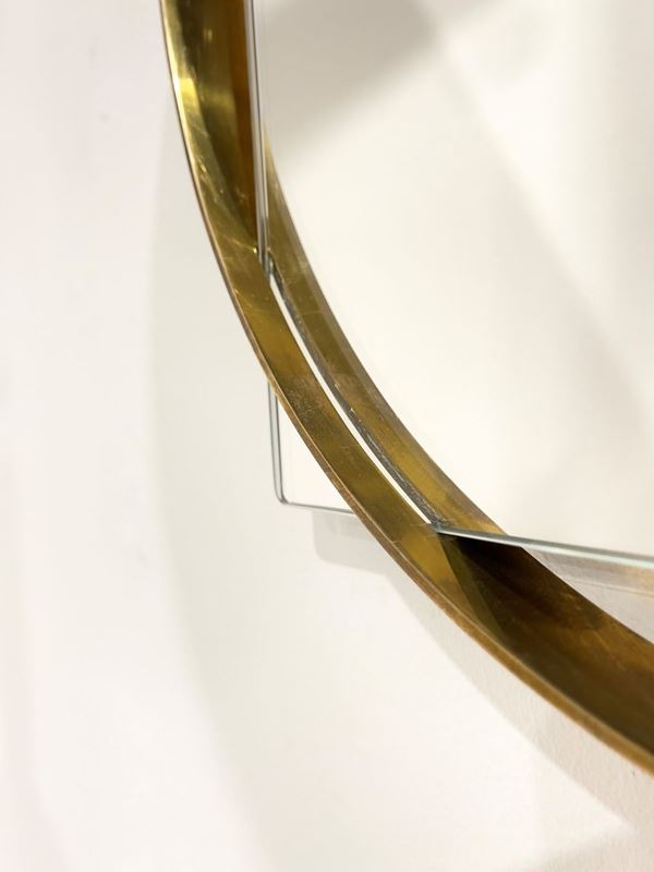 Specchio quadrato con cornice rotonda in ottone. Manifattura italiana. Anni '70.