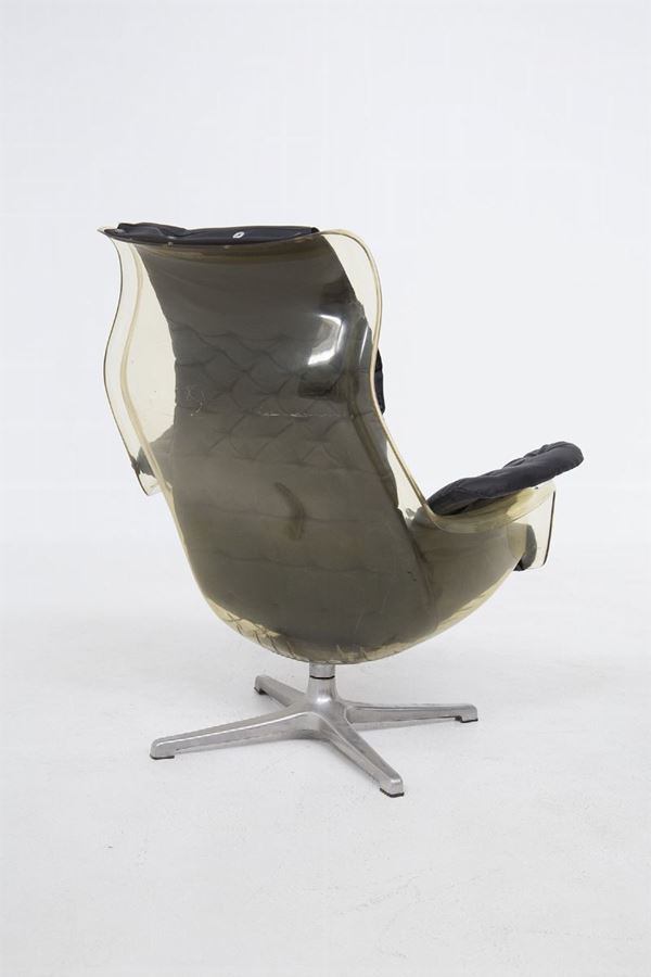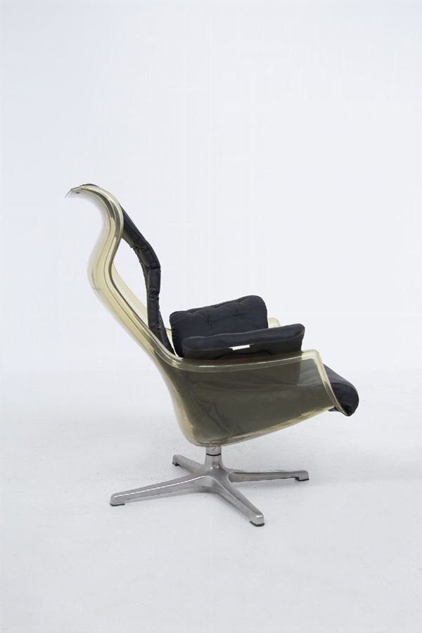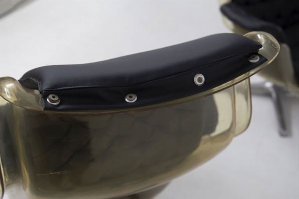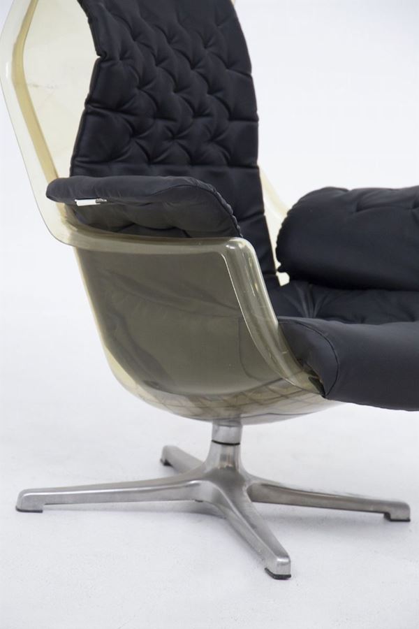 Coppia di sedie girevoli Space Age Galaxy in acciaio, materiale plastico e similpelle. Produzione DUX. 1968.