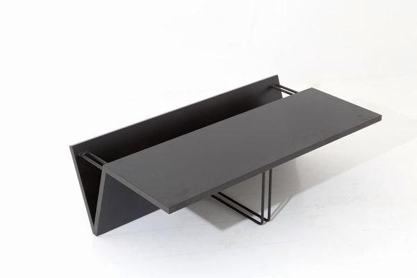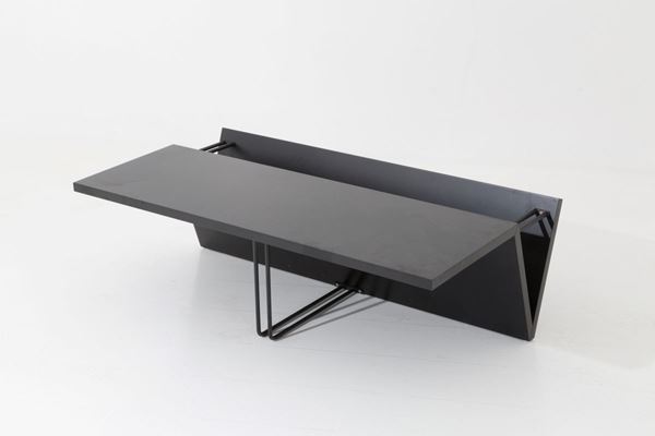 Tavolino da caffÉ in legno laccato e metallo verniciato nero. Manifattura italiana. Anni '70