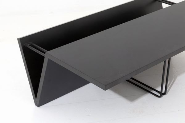 Tavolino da caffè in legno laccato e metallo verniciato nero