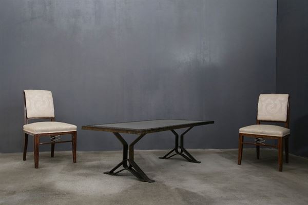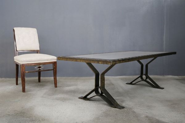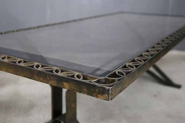 Tavolino in ferro e vetro scuro. Manifattura francese. Anni '40.