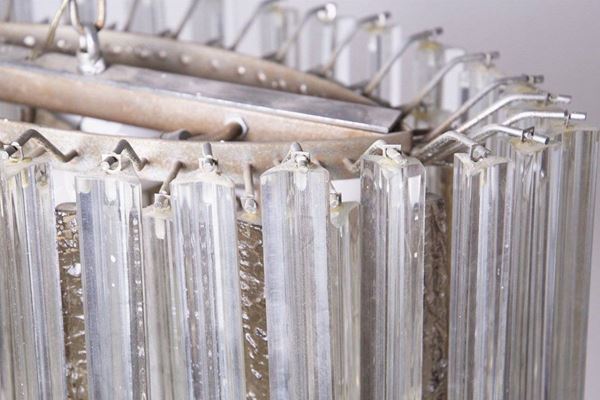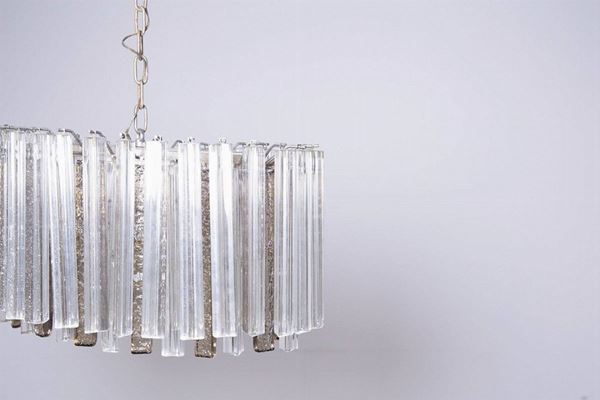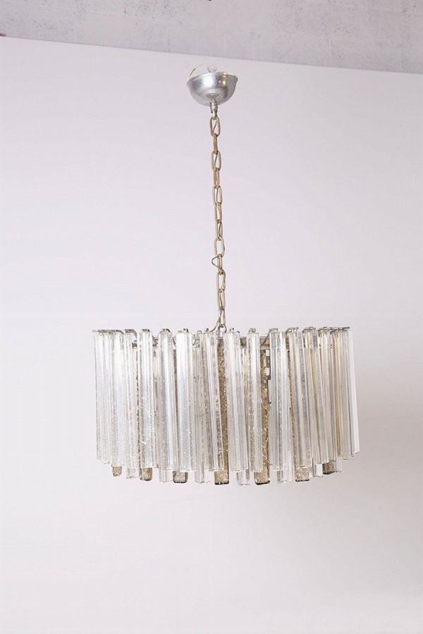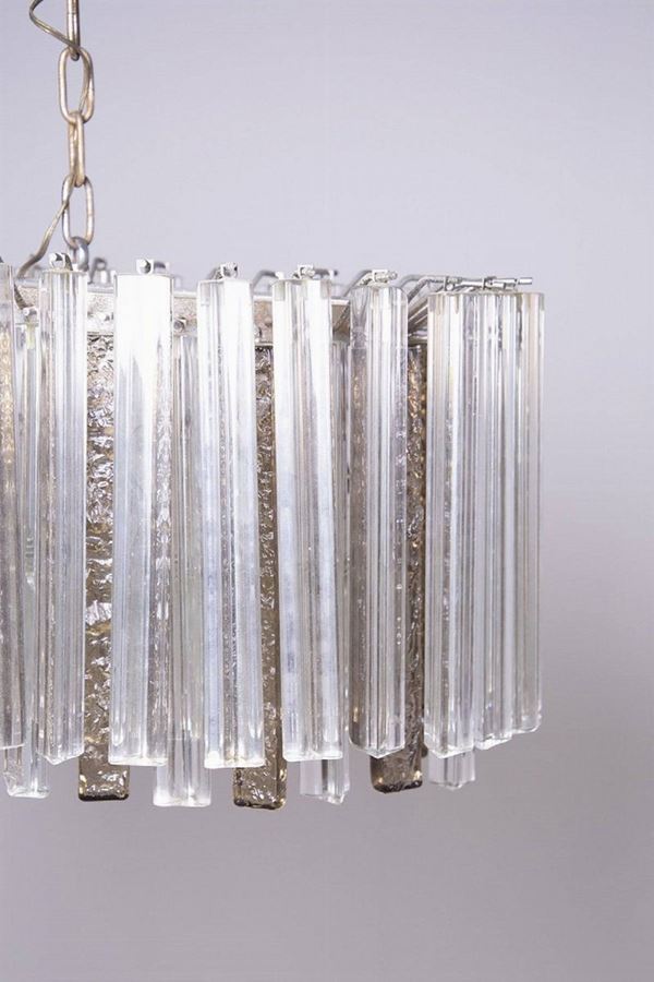 Lampadario in vetro di Murano bianco e avorio. Produzione VENINI. Anni '50. Da revisionare.