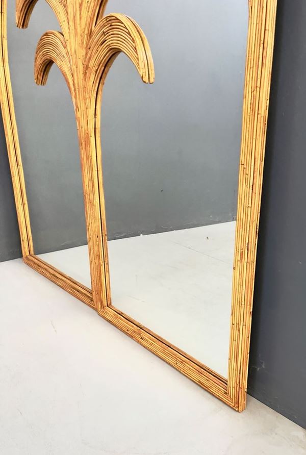 Specchio con cornice e decorazioni in bambù. Produzione VIVAI DEL SUD. Anni '50