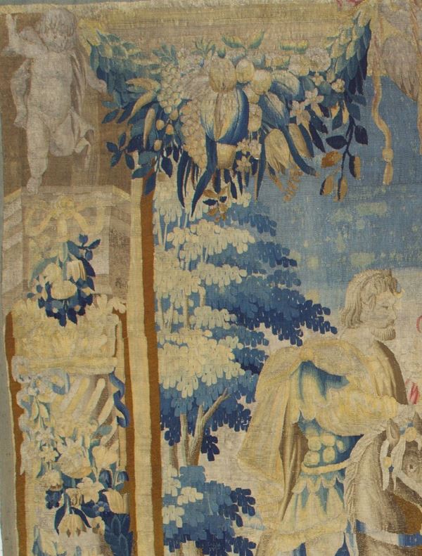 Arazzo Fiandre. Bruxelles. XVII secolo. Buono stato di conservazione, le dimensioni sono originali, presente qualche piccolo vecchio restauro.