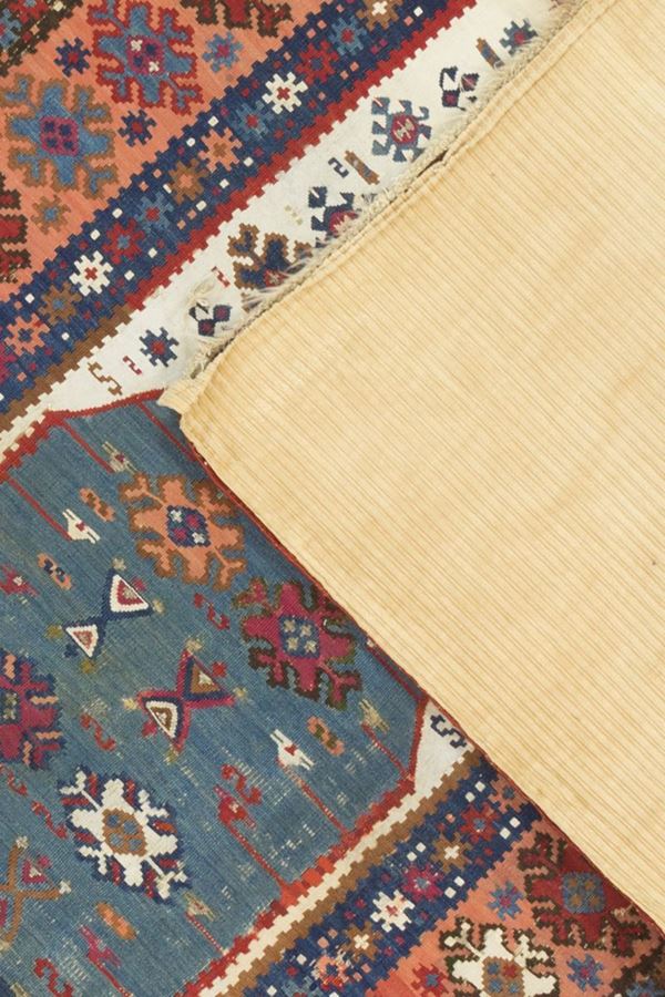 * Kilim Erzurum, lavorazione in lana, cotone e fili argentati. Anatolia Orientale. XIX secolo. Buono stato di conservazione.