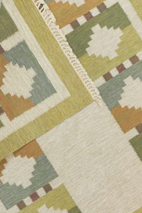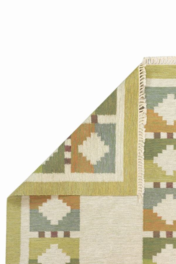 * Kilim in lana firmato IR in basso a sinistra. Svezia. Metà XX secolo. Perfetto stato di conservazione.