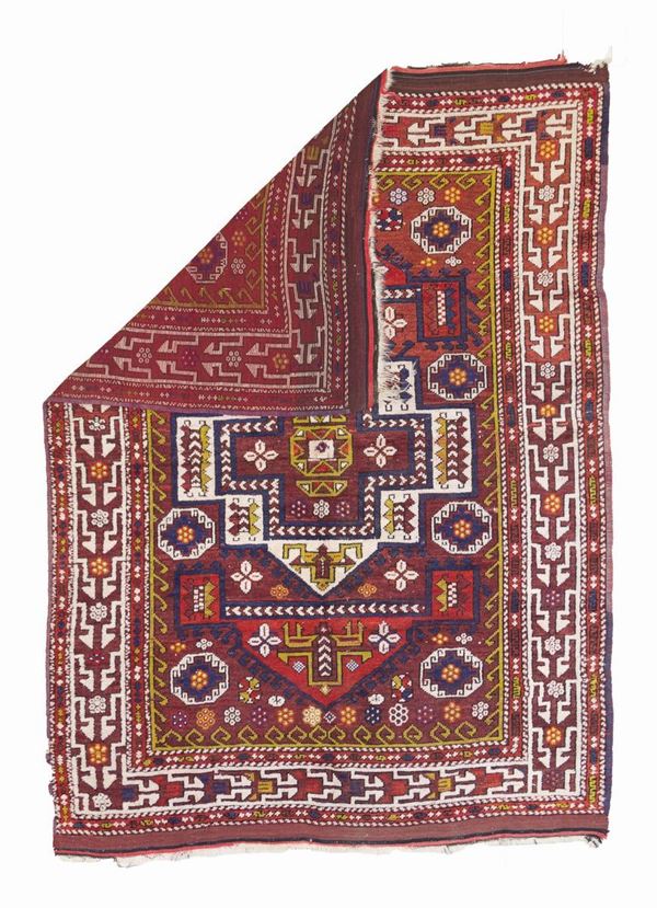 Tappeto Ciannakale in lana. Anatolia Occidentale. Metà del XX secolo. Ottimo stato di conservazione, un piccolo punto del bordo É danneggiato.