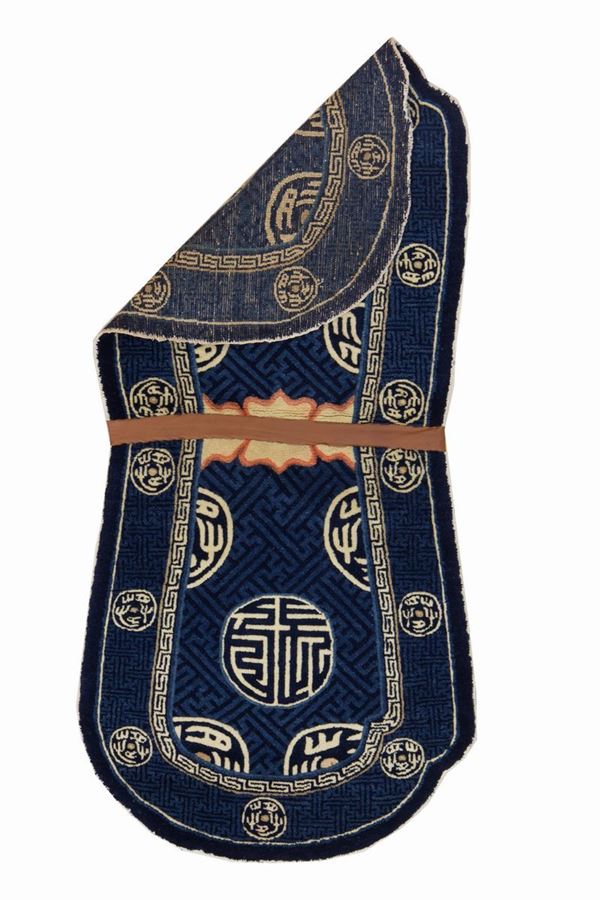 * Tappeto coprisella da cavallo in lana. Tibet. Circa 1900. Perfetto stato di conservazione.