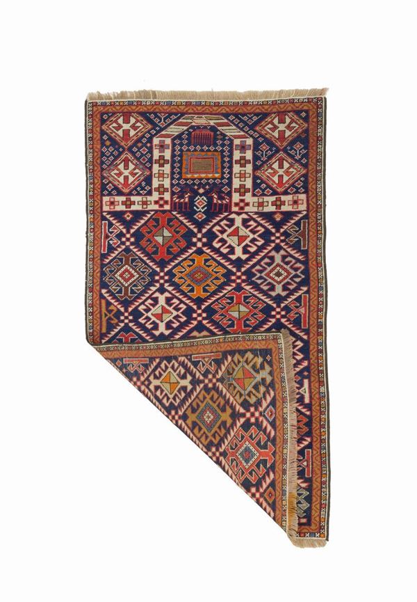 Tappeto Daghestan a preghiera in lana. Caucaso. Inizi XX secolo. Buono stato di conservazione, ridotto ai lati.
