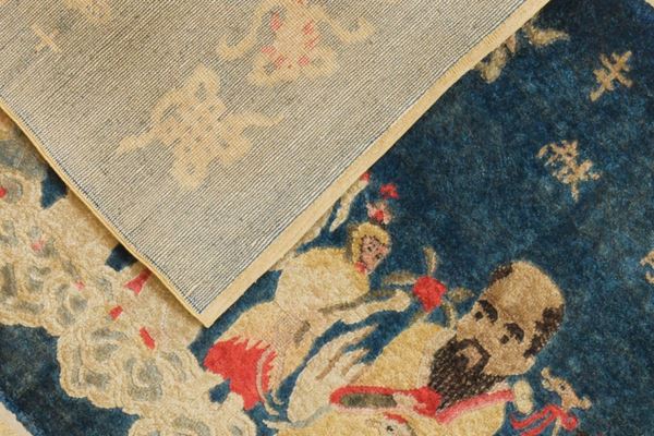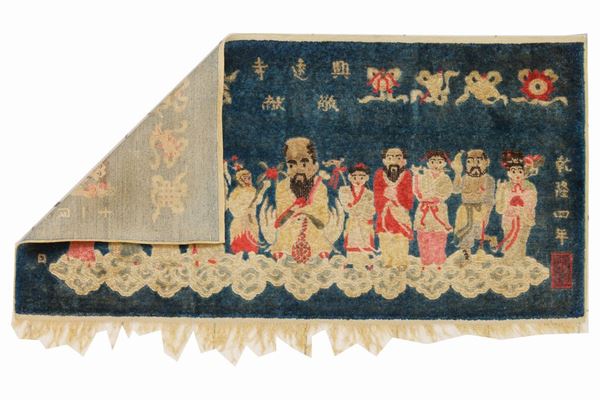 * Tappeto figurativo in pura seta. Cina. XIX secolo. Perfetto stato di conservazione.