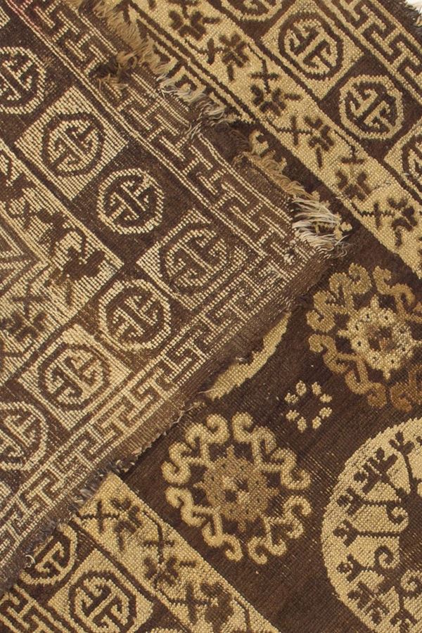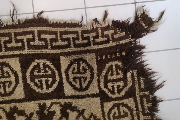 Tappeto Gansu in lana. Tibet. Fine XIX secolo. Da restaurare.