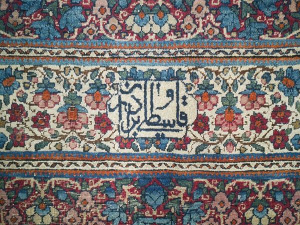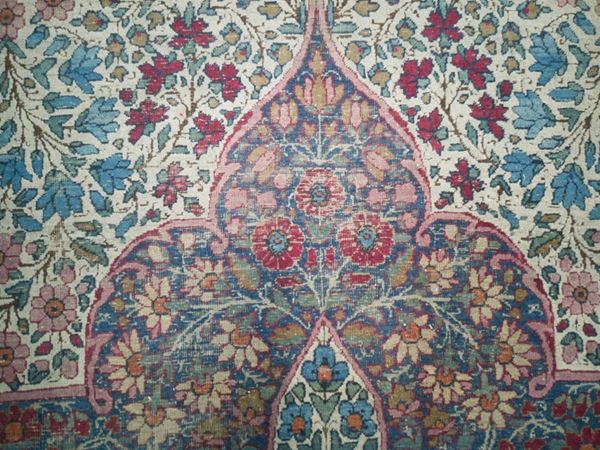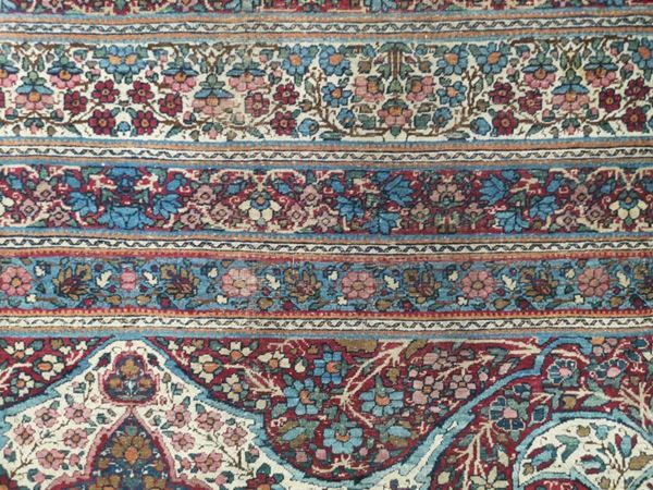 Tappeto Kirman Laver in lana firmato BARADARANE GAVSTILI. Persia. Fine XIX secolo. Buono stato di conservazione, piccole zone basse di vello.