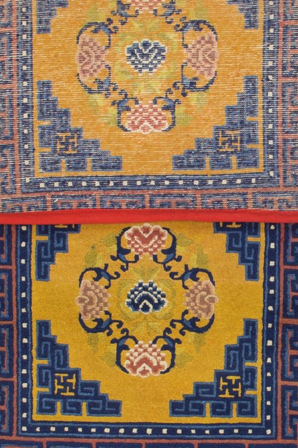 Tappeto Ningxia in lana. Cina Occidentale. Fine XIX secolo. Ex collezione The Te-Chun Wang. Perfetto stato di conservazione.