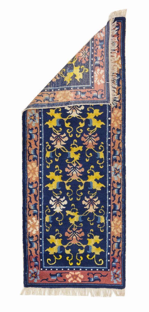 Tappeto Ningxia in lana. Cina Occidentale. Inizi XX secolo. Ex collezione The Te-Chun Wang. Ottimo stato di conservazione.