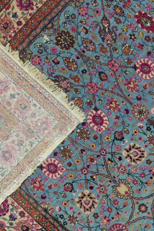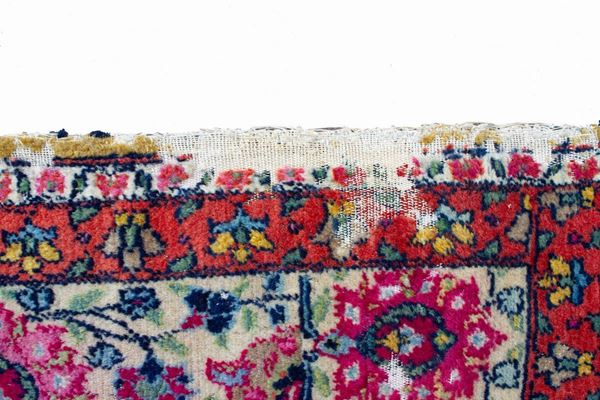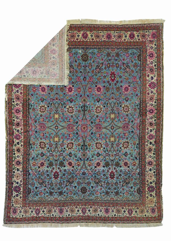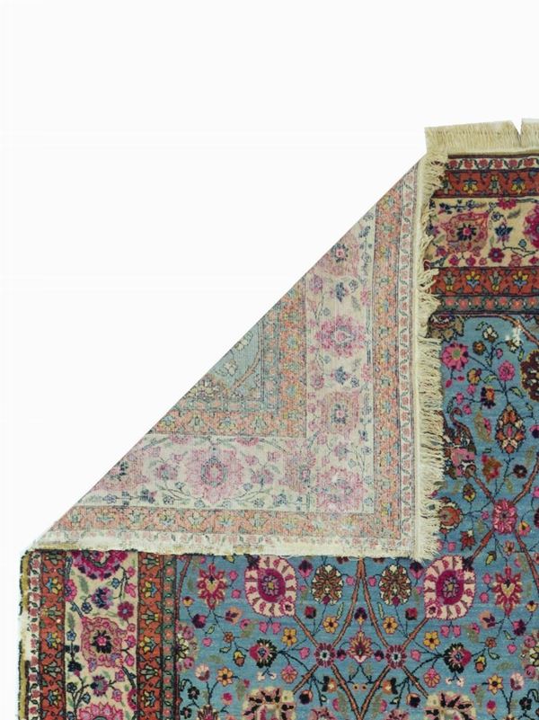 Tappeto Senneh baft in lana. Persia. Inizi XX secolo. Molte zone tarmate sui bordi e sul campo del tappeto.