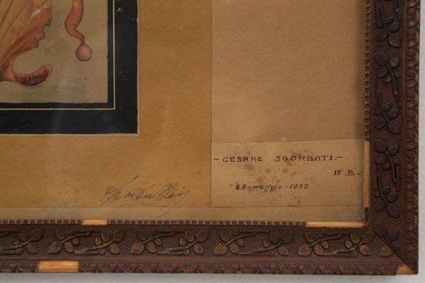 Acquerello su carta raff. "GHIRLANDA DI FRUTTA". Firma non identificata in basso a destra. XX secolo. In cornice.