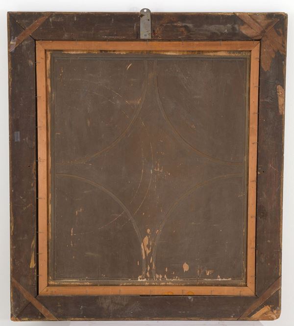 Dipinto olio su tavola raff. ''NATURA MORTA CON CACCIAGIONE''. Siglato B e datato 1873 in basso a sinistra. In cornice intagliata e dorata.