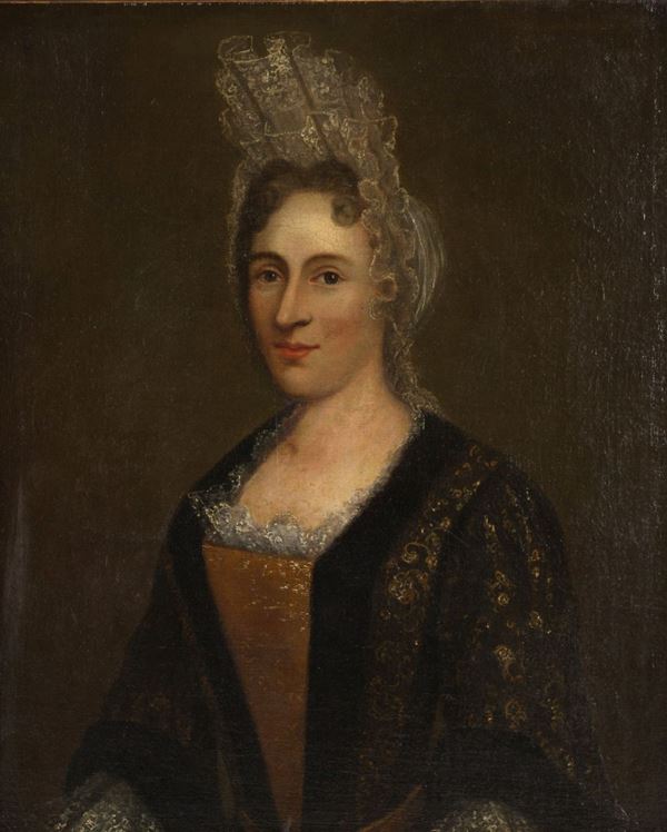 Dipinto olio su tela raff. ''RITRATTO DI DAMA''. XVIII secolo. In cornice.
