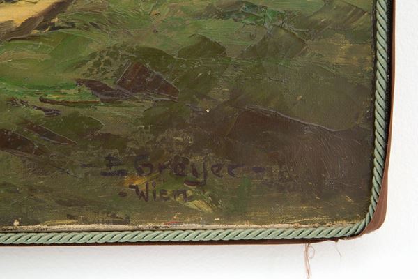 Dipinto olio su tela raff. "BAITA DI MONTAGNA". Firmato in basso a destra.
