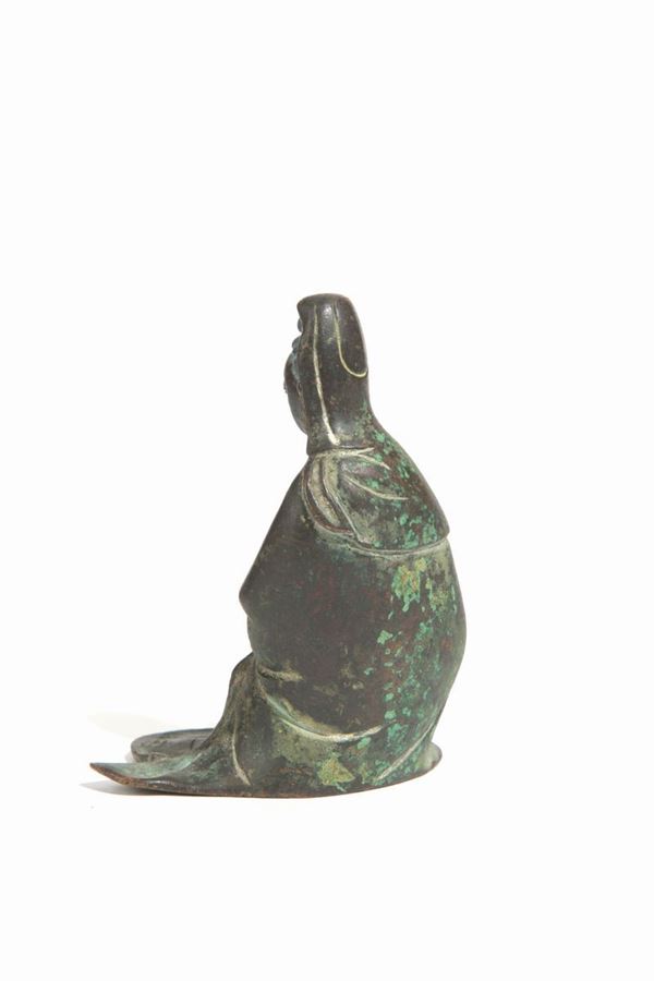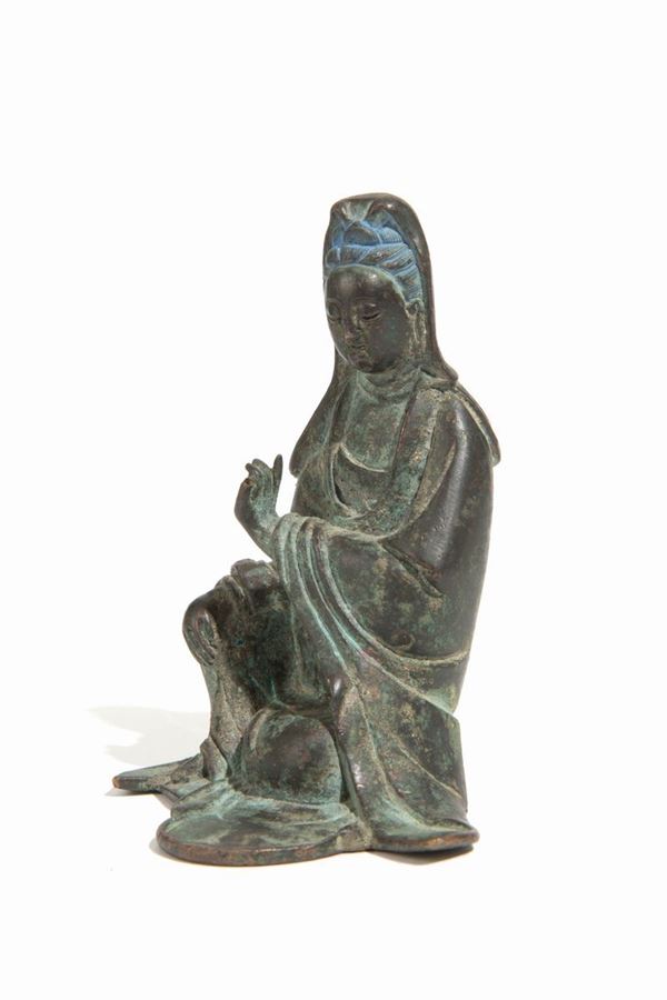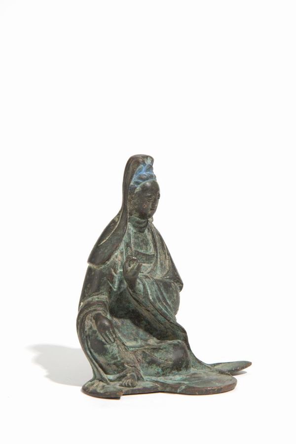 Piccola scultura in bronzo raff. "GUANYIN SEDUTA". Cina.