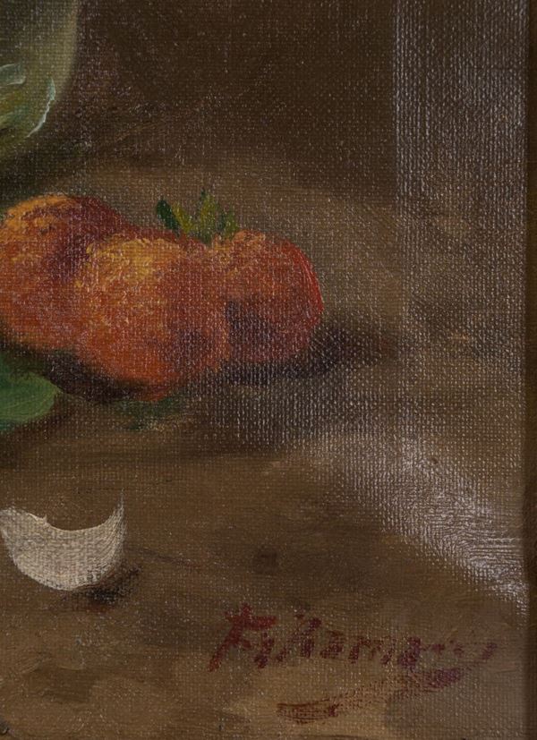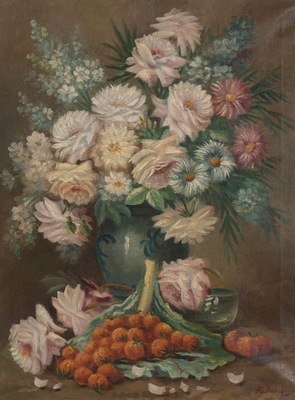 Dipinto olio su tela raff. ''NATURA MORTA CON FIORI''. Firmato e datato 1882 in basso a destra. In cornice.
