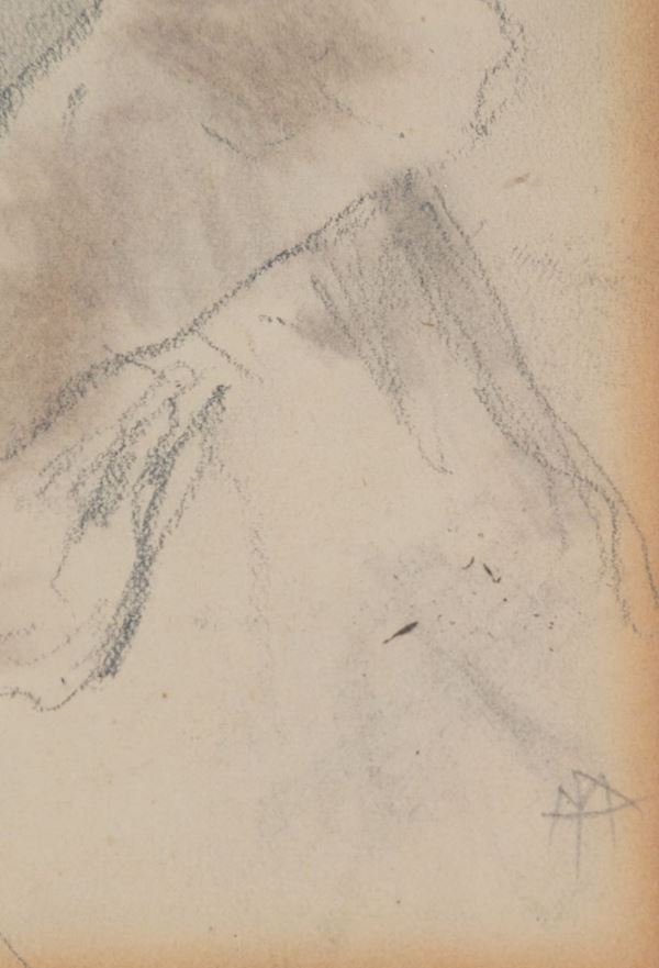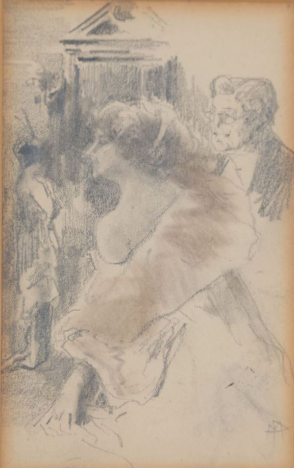 Disegno a matita su carta raff. ''GENTILUOMO CON GENTILDONNA''. Siglato in basso a destra. In cornice.