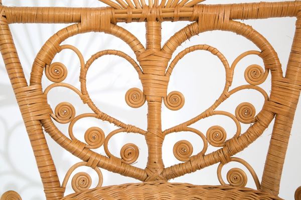 Poltrona in vimini. Anni '60. Piccolo difetto alla seduta.