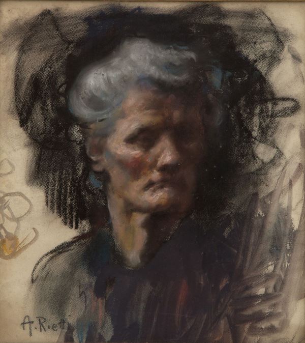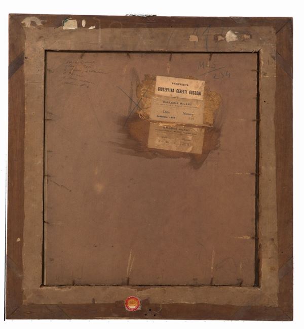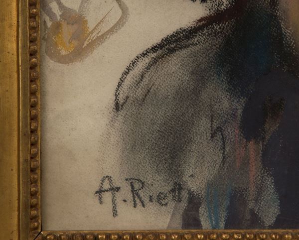 Dipinto olio su cartoncino raff. "RITRATTO". Firmato in basso a sinistra. In cornice dorata.