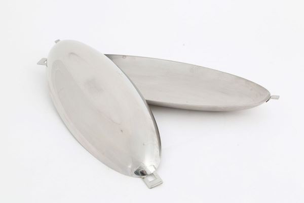Pesciera in acciaio inossidabile. Disegno del 1957. Marcata sul fondo.