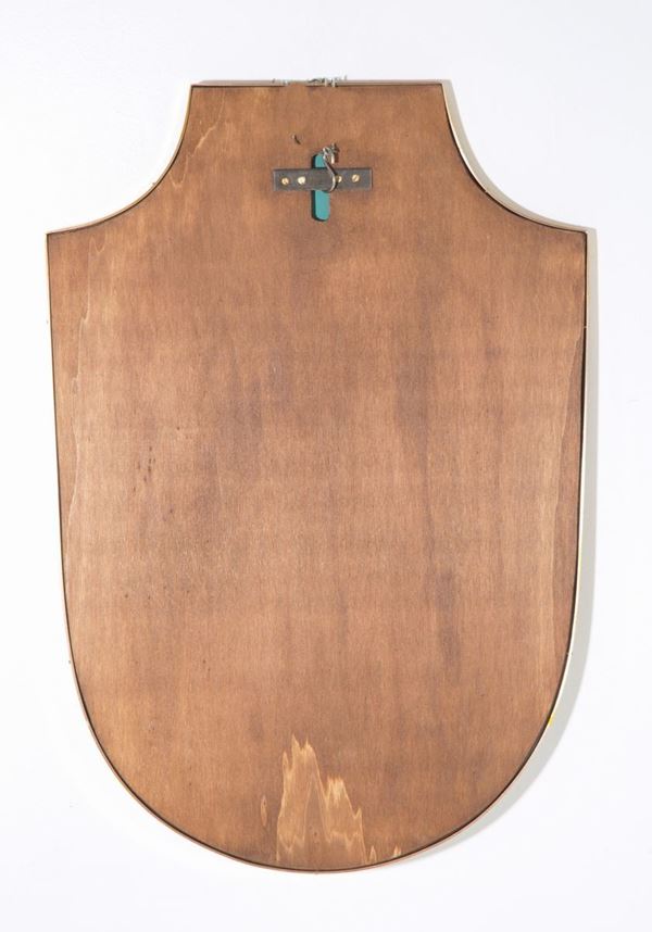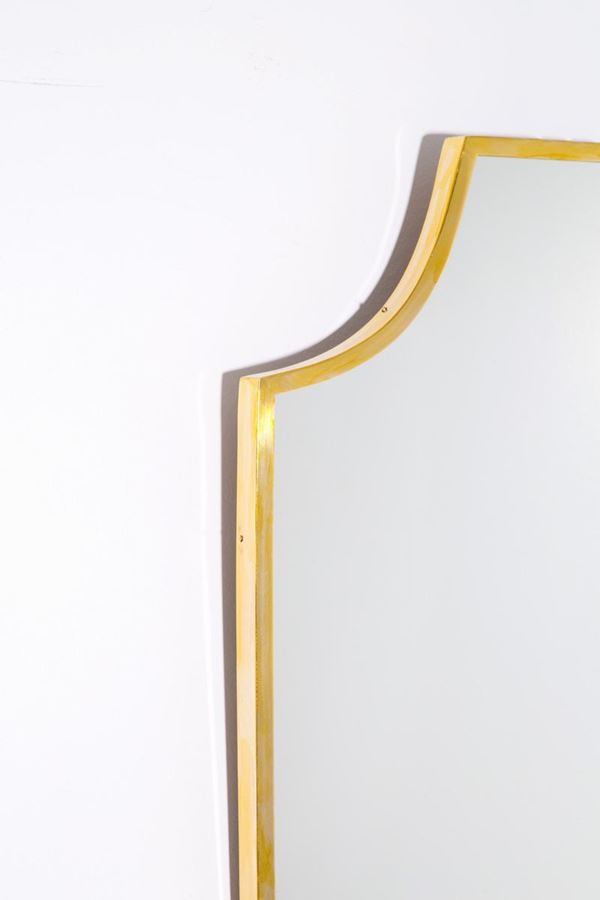 Specchio a forma di scudo in ottone. Manifattura italiana. Anni '50.