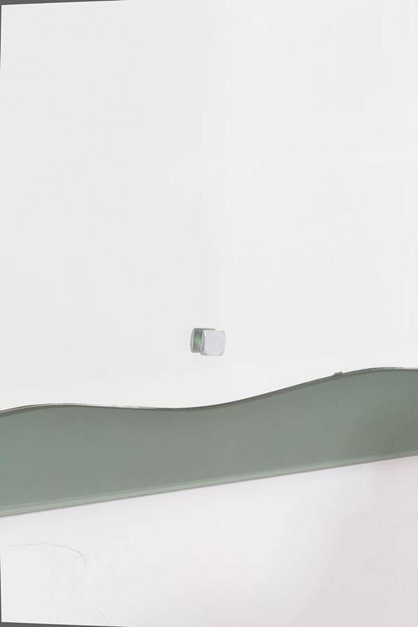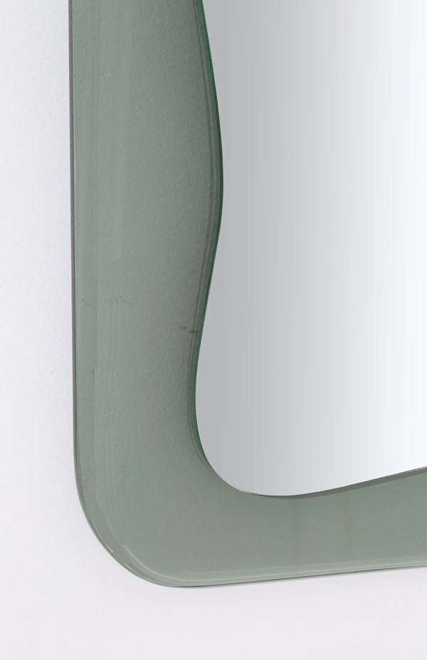 Specchio in vetro sagomato montato su vetro verde. Manifattura italiana. Anni '60.