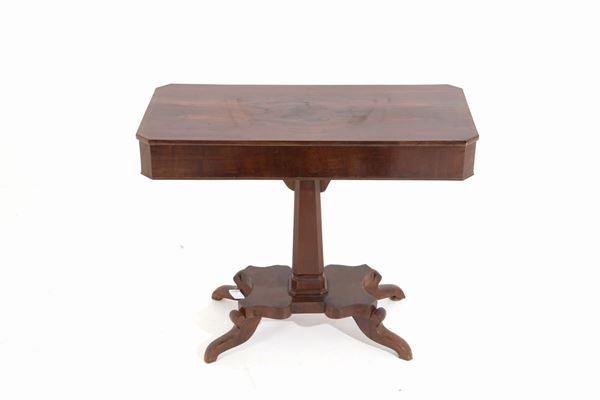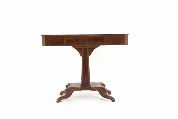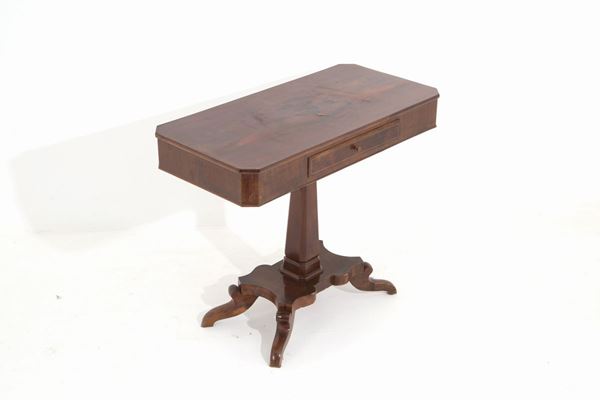 Tavolino-consolle in legno di noce con cassetto. XIX secolo. Difetti.