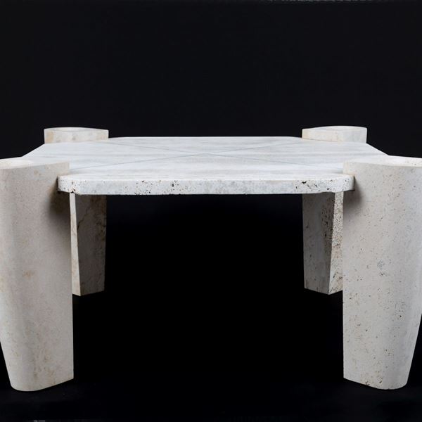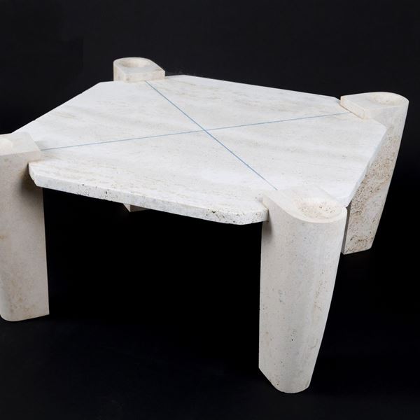 Tavolo in travertino. Manifattura italiana. Anni '60.