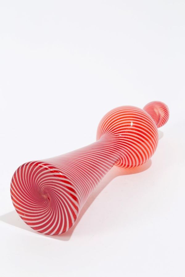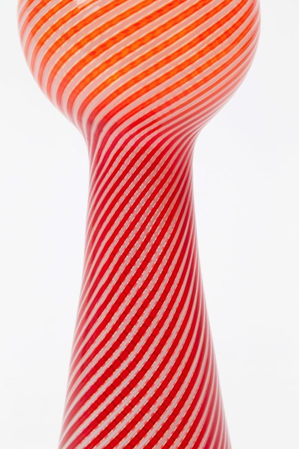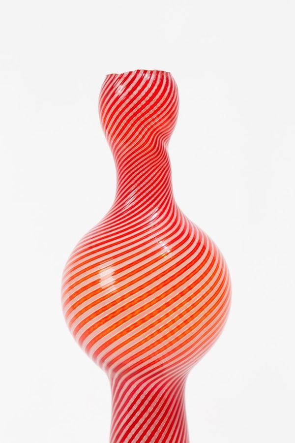 Vaso in vetro di Murano a reticello sui toni del rosso. Inizi XX secolo.