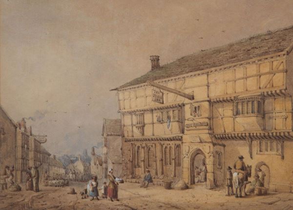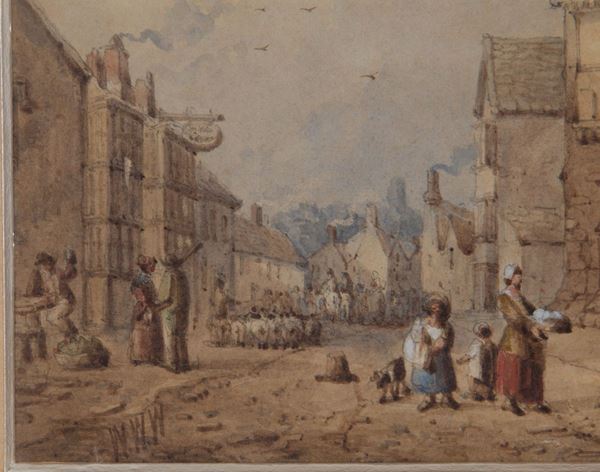 Acquarello su carta raffigurante "VITA DI PAESE". Siglato in basso a sinistra W.W.W. In cornice.