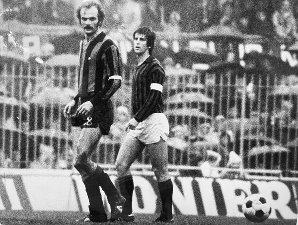 - Mazzola e Rivera durante un Milan-Inter, partita del campionato di serie A.
