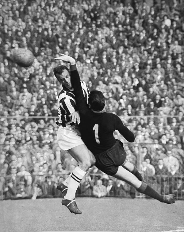 - John Charles e Narciso Soldan a San Siro durante la partita Milan-Juventus del 29 marzo 1959;