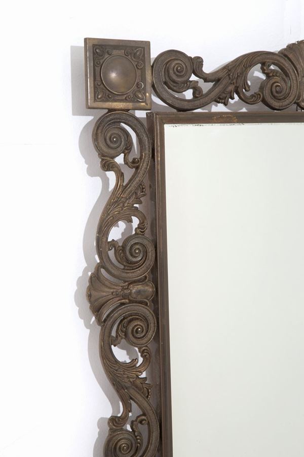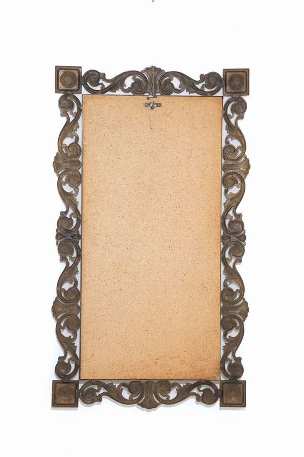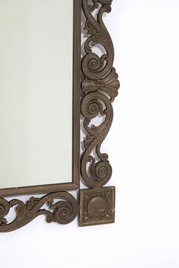 Specchiera rettangolare in bronzo a motivi rocaille. Anni '80.