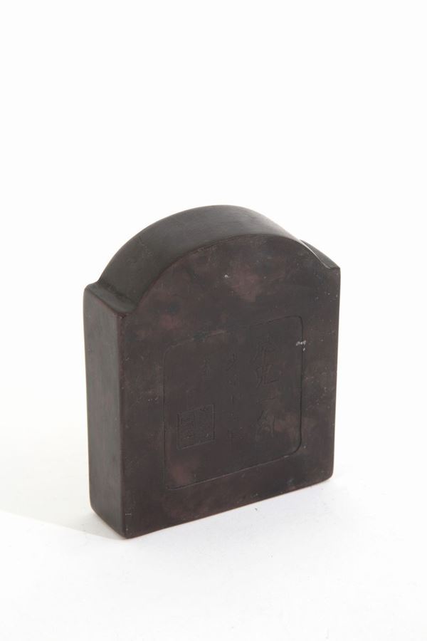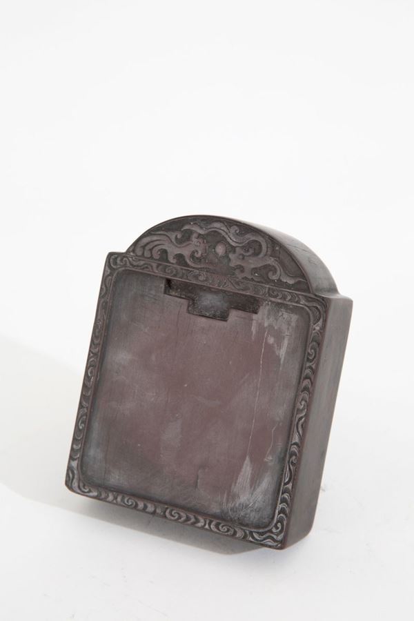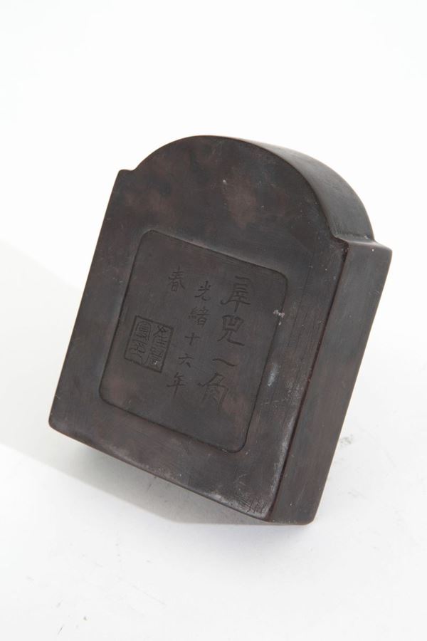 Affilalame in pietra con coperchio in legno. Cina.