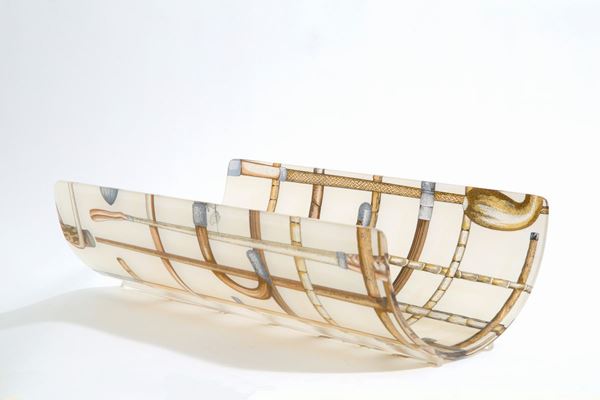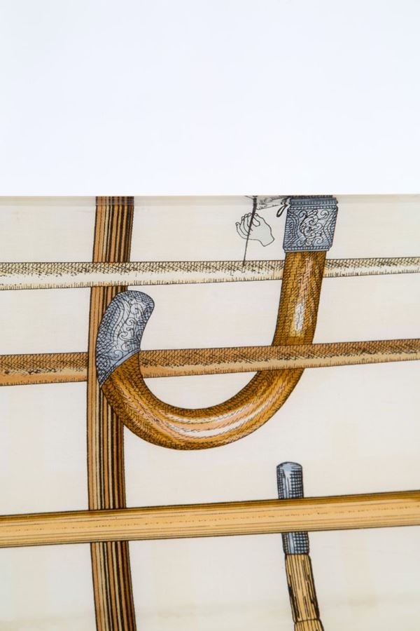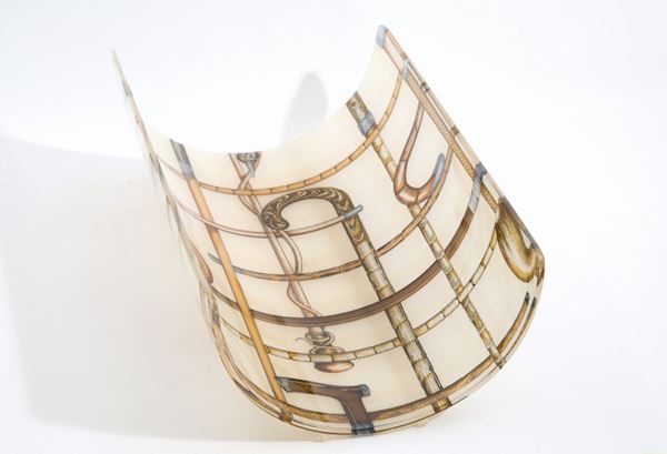 Centrotavola in plexyglass raffigurante "BASTONI". Produzione FORNASETTI. Firmato.