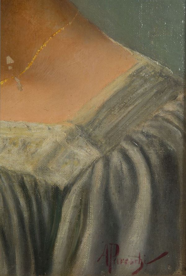 Dipinto olio su tela raffigurante "PROFILO DI DONNA". Firmato A. PARESCHI in basso a destra. Fine XIX secolo. In cornice dorata.